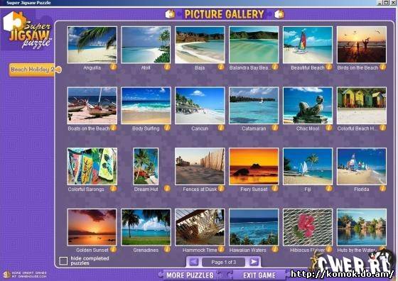 | Super Jigsaw Beach Holiday 2 - пазлы на PC. - 6,48 МБ Расслабтесь с этой великолепной коллекцией мозаик. Теплый песок, бирюзовые волны, ароматные цветы... всё это ждет Вас в этой игре. Теперь в игре размер паззлов увеличен до 1225 на картинку. Жанр: паззл Интерфейс: английский Статус: полная версия Эльф Боулинг. 7 звезд - 21,94 МБ Проказники-эльфы замыслили что-то недоброе. Поставьте их на место! Вас ждет головокружительный боулинг с веселыми шутниками-эльфами вместо кегель. Покажите им, что такое настоящий Страйк! Огромное количество бонусов откроют вам безграничные возможности в Эльф Боулинге. Системные требования: OS: Windows 2000/XP/Vista CPU: 1.0 GHz RAM: 256 MB Video: 32 MB DirectX: 8.1 или выше Издатель: TurboGames Жанр: аркада Язык интерфейса: русский Лекарство: не требуется (полная версия) Примечание. По умолчанию игра запускается в оконном режиме. Полноэкранный режим включается в пункте "Опции" в главном меню. Hardwood Solitaire Deluxe - пасьянсы - 6,68 МБ Превосходный набор пасьянсов в атмосферном окружении. Игра имеет такие особенности: наличие более 100 раскладов (Klondike, FreeCell, Spider и другие), полноценная трехмерная графика, множество различных графических и звуковых фонов для создания соответствующего настроения... Если вам до тошноты надоели стандартные пасьянсы, эта новинка – именно для Вас. Жанр: пасьянс Интерфейс: английский Статус: полная версия Тим и Бекки. Веселые привидения - 40,43 МБ Помогите веселым привидениям Тиму и Бекки собрать всех сбежавших духов. Сбрасывайте вниз цветные блоки, чтобы совместить их, а блоки с призраками помогут вам убрать цветные блоки. Попробуйте свои силы в трех разных режимах - режим испуга: поймайте достаточно духов, чтобы заполнить духобак; режим головоломки: очистите все цветные блоки; режим бесконечности: набирайте очки при постоянном увеличении скорости игры. Особенности игры: - забавные и веселые персонажи; - несколько режимов игры; - более 70 уровней; - увлекательная история; - красочные эффекты и музыка, создающая атмосферу; - увлекательная игра, созданная для отдыха дома или во время перерывов на работе. Системные требования: OS: Windows XP/Vista CPU: 1.0 GHz RAM: 256 MB Video: 16 MB DirectX: 8.1 или выше Издатель: TurboGames Жанр: match-3 Язык интерфейса: русский Лекарство: не требуется (полная версия) Jewels Of Cleopatra - головоломка - 24,06 МБ Вы уже устали от простых старых игр на отметку плиток? Данная головоломка имеет уникальность и талантливо проработана, что предоставит вам возможность почувствовать приключения по древним руинам Египта – что будет развлекать вас от начала до конца. В качестве археолога Др. Фелисити Тарнстоун, вы должны пробиваться по скрытым гробницам и подземным катакомбам Долины Нила, отмечая плитки, расчищая путь. Ваша задача усложняется конкурентом – торговцем предметами старины – Шэди МакГреди, который заинтересован в том, чтобы быстро заработать доллары, а не в важных археологических открытиях! Раскройте сундуки с сокровищами, заполненные магическими предметами, которые помогут вам очистить скалы и другие препятствия, стоящие на вашем пути. А вы готовы к приключению по поиску потерянных сокровищ? Помимо геймплея в стиле Big Kahuna Reef вы будете учавствовать в таких мини-играх, как Гонки скарабеев и Головоломки на время. Очень много характеристик: - 9 храмов. - Более 100 уровней, каждый с увеличивающейся сложностью. - Различные препятствия, преграждающие путь. - 12 очаровательных плито